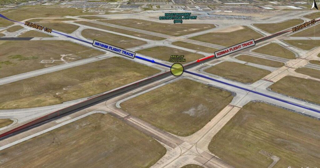One of the most recent events was an actual collision in October. The crew of the Raytheon Hawker 850 did not follow air traffic control instructions at Houston Hobby Airport and hit a Cessna Citation Mustang landing on a crossing runway.