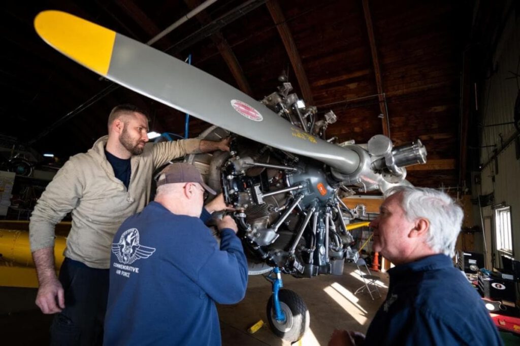 Air aviation news – John Schmidt submitted this photo and note: “Commemorative Air Force members Ron Bombeck, crew chief Dan Bombeck, and pilot Jeff Knutson inspect the Pratt and Whitney R-985 on the nose of the Minnesota Wing’s Oshkosh-award-winning BT-13 in the hangar at South St. Paul Airport (KSGS). Winter maintenance has begun, and it’s an excellent time to see the warbirds, with inspection panels off, as crews of volunteers prepare the airplanes for another air show season.”