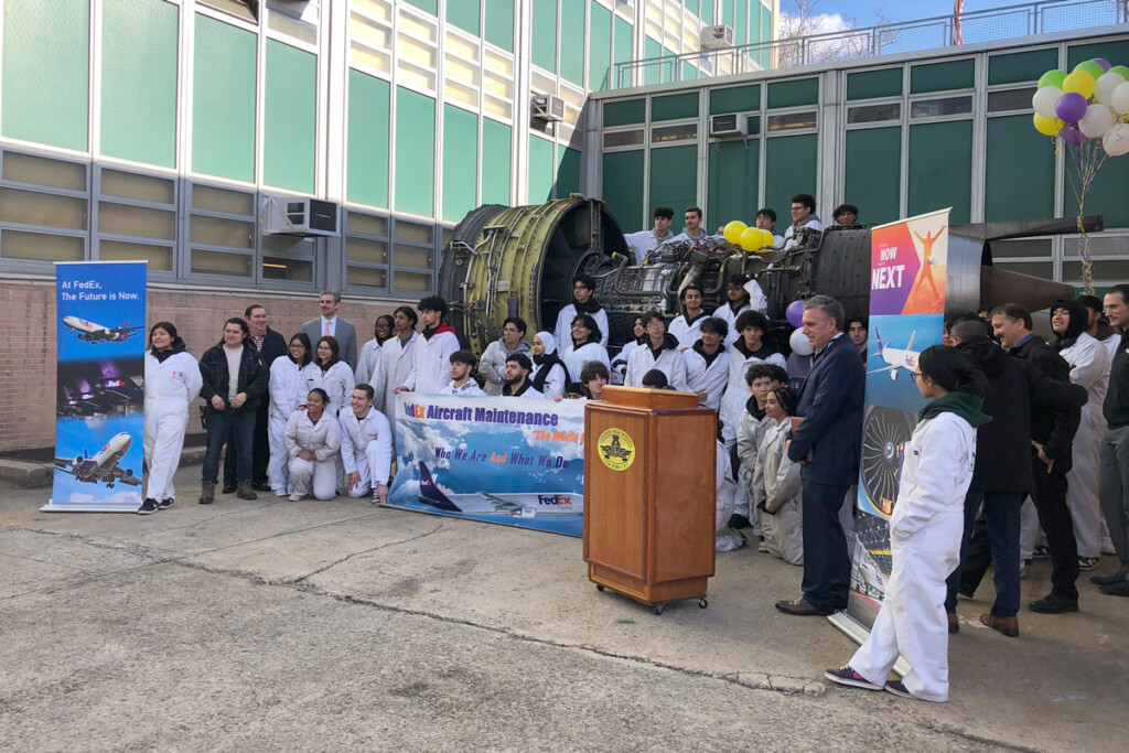 Air aviation news- On Wednesday, December 6, 2023, representatives from FedEx, including John Borkowski, the Managing Director Airport Line Maintenance East, and three local representatives (including Aviation High School alums), as well as students, staff, parents, and school administration, celebrated the donation of a FedEx GE CF6 engine to be used by Aviation High School seniors and fifth-year students to enhance their powerplant technical skills and industry readiness.
