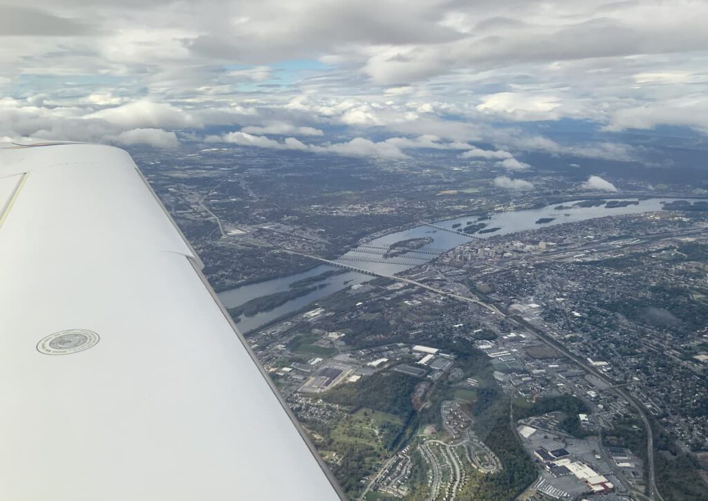 Air aviation news- Victor Vogel, MD, CFI, CFI-I submitted this photo and note: “In a Cirrus SR22 on an IFR flight plan from Norfolk, Virginia, to Selinsgrove, Pennsylvana. We just descended out of icing conditions at 7,000 feet MSL to clear air at 6,000 feet MSL over Harrisburg, Pennsylvania and the Susquehanna River. A smooth ride.”