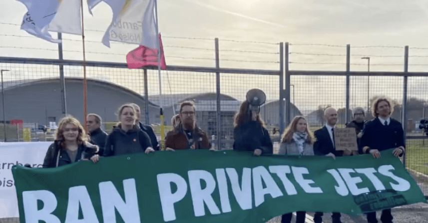 Aviation News International – Protestors from the local chapter of Extinction Rebellion demonstrated outside Farnborough Airport (EGLF) on Saturday to oppose the expansion of private aviation at the London-area facility. The group, which was joined by prominent environmental activist Greta Thunberg, marched from the center of the town to the airport, calling for all private flights to be banned.