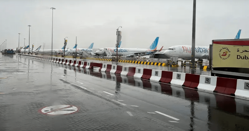 The airport briefly suspended operations on Tuesday as the rains caused flooding across Dubai and elsewhere in the UAE.