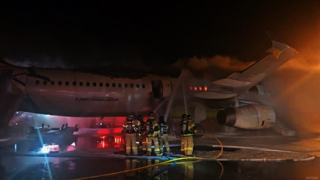 The fire on board the Air Busan plane Gimhae International Airport began at about 22:26 local time (13:26 GMT) on Tuesday, Yonhap news agency said, citing South Korea’s fire authorities.