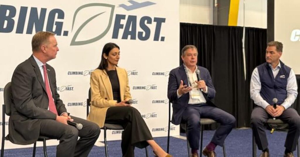Both said they’re taking an “agnostic” approach to electric aircraft charging infrastructure, though Lefebvre would like to see OEMs commit to a common charging system.