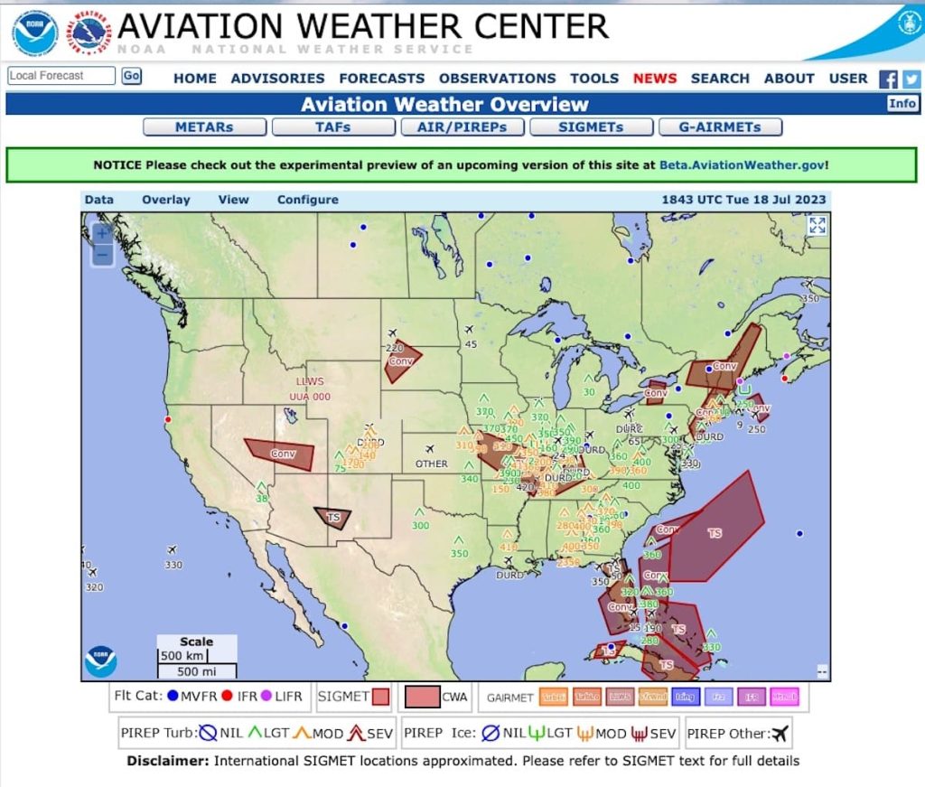 According to NBAA officials, the Aviation Weather Center recently launched an experimental trial version of its improved AWC resource that offers an even more informative and easy-to-use interface. You can check it out at Beta.AviationWeather.gov.