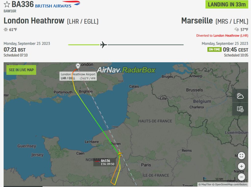 British Airways flight BA336 London – Marseilles