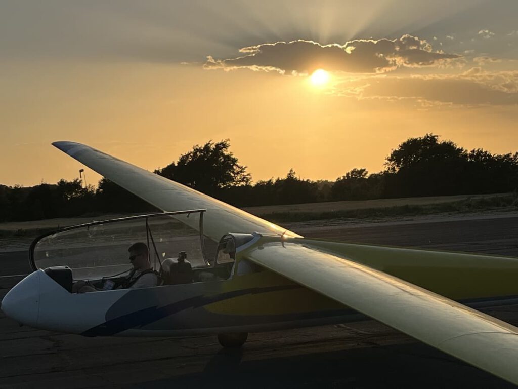 Air aviation news – Douglas Dutton submitted this photo and note: “Evening glider flights at the Civil Air Patrol’s North Central Region Glider Flight Academy in Yoder, Kansas.”