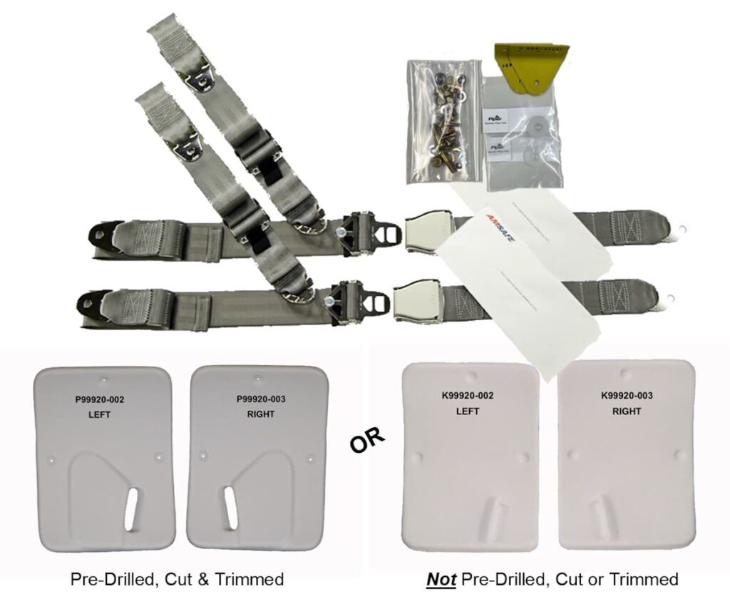 Alpha Aviation’s Rear Seat Shoulder Harness Installation kits are sold with everything required for the installation of two center or aft seats, unless noted otherwise, and are available with fixed strap (manually adjustable) or inertial reel equipped 3-point diagonal (single strap) harnesses.
