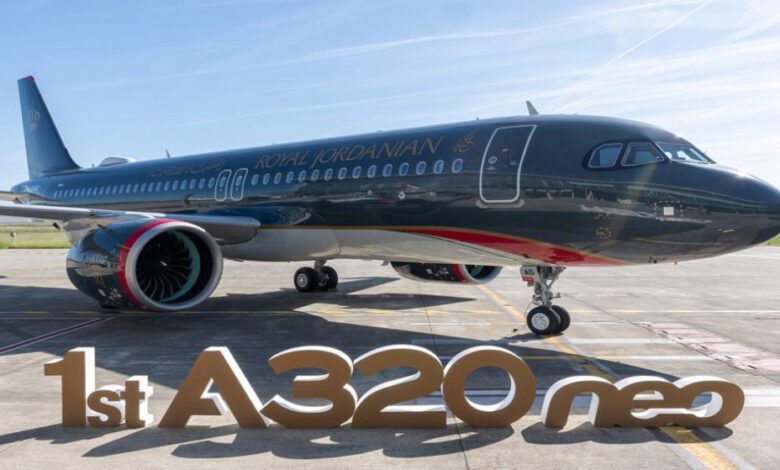 أول طائرة إيرباص A320neo جديدة للملكية الأردنية تحط في مطار الملك الحسين في العقبة