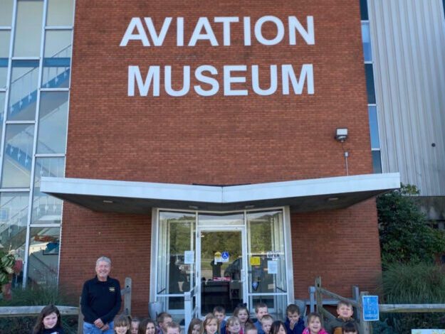 Ed Watson, museum president, took the students on a tour of the museum as well as made each of the student’s a paper airplane.