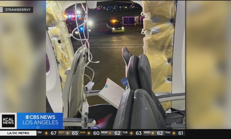 The Alaska Airlines Boeing 737 Max 9 returned to Portland 35 minutes into its flight to California after an outer section, including a window, fell.
