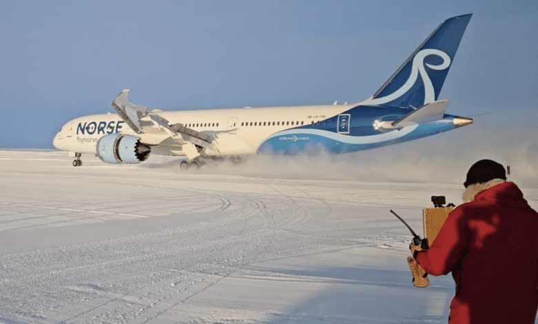 ِAviation News International – In a groundbreaking achievement, Norwegian flight Boeing 787 Dreamliner touched down on the icy expanse at Troll airfield in Antarctica on November 15, 2023, marking a historic moment for Norse aviation.