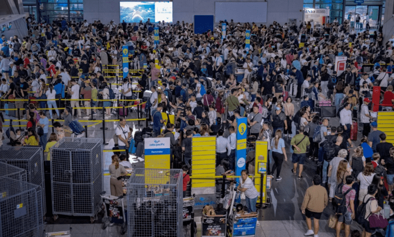 Long queues of passengers form at the check-in counters at Ninoy Aquino International Airport in Manila, Philippines on July 19.