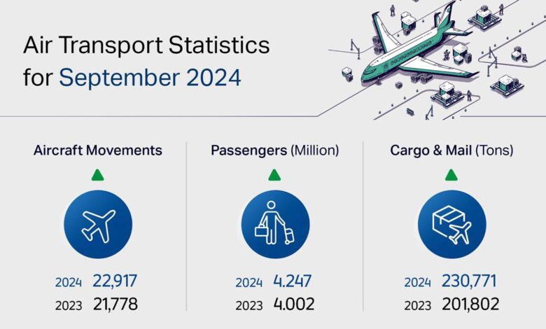 Preliminary Air Transport Statistics for the month of September 2024 indicated an increase in aircraft movement of 5.2% compared to the same month last year. The number of passengers also increased by 6.1% compared to September 2023.