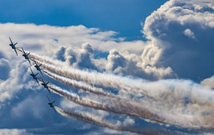 The reality that boundary-pushing aviation carries unavoidable risks, even in peacetime, was driven home less than an hour later, when a member of the U.S. Navy Parachute Team was seriously injured during a stunt jump. The airshow paused for 45 minutes while the injured jumper received care and was evacuated by helicopter.