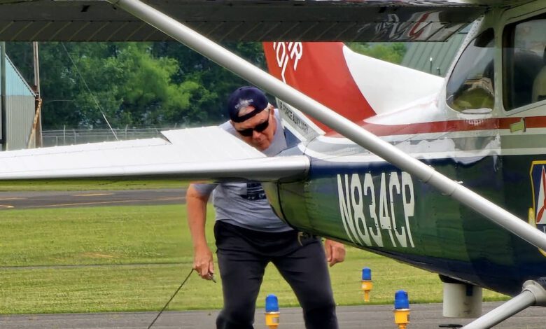Aviation news international – Diana Layton submitted this photo and note: “Jack Banks with the West Virginia Civil Air Patrol hooks up the tow cable, preparing for glider orientation flights.”