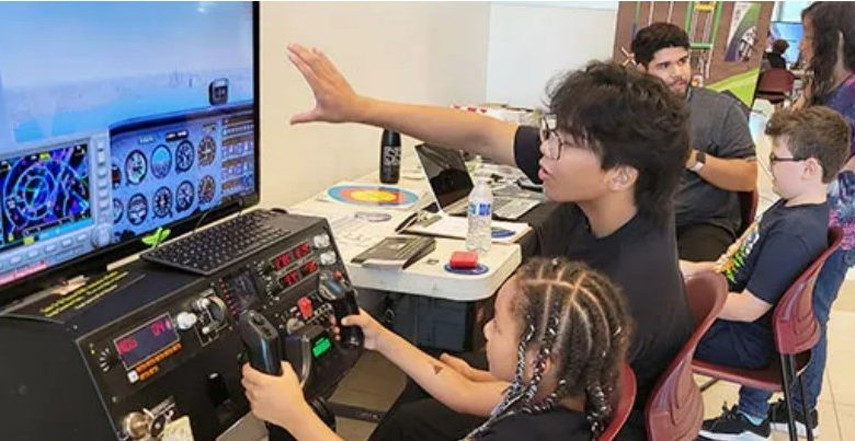 At the symposium, young attendees used flight simulators to fly around the world, steered miniature robotic vehicles using hand-held remote controls, learned the basics of aerodynamics by flying paper airplanes and sat in the cockpit of private airplanes. They also learned first-hand from employees the requirements and qualifications of many airline and airport positions.